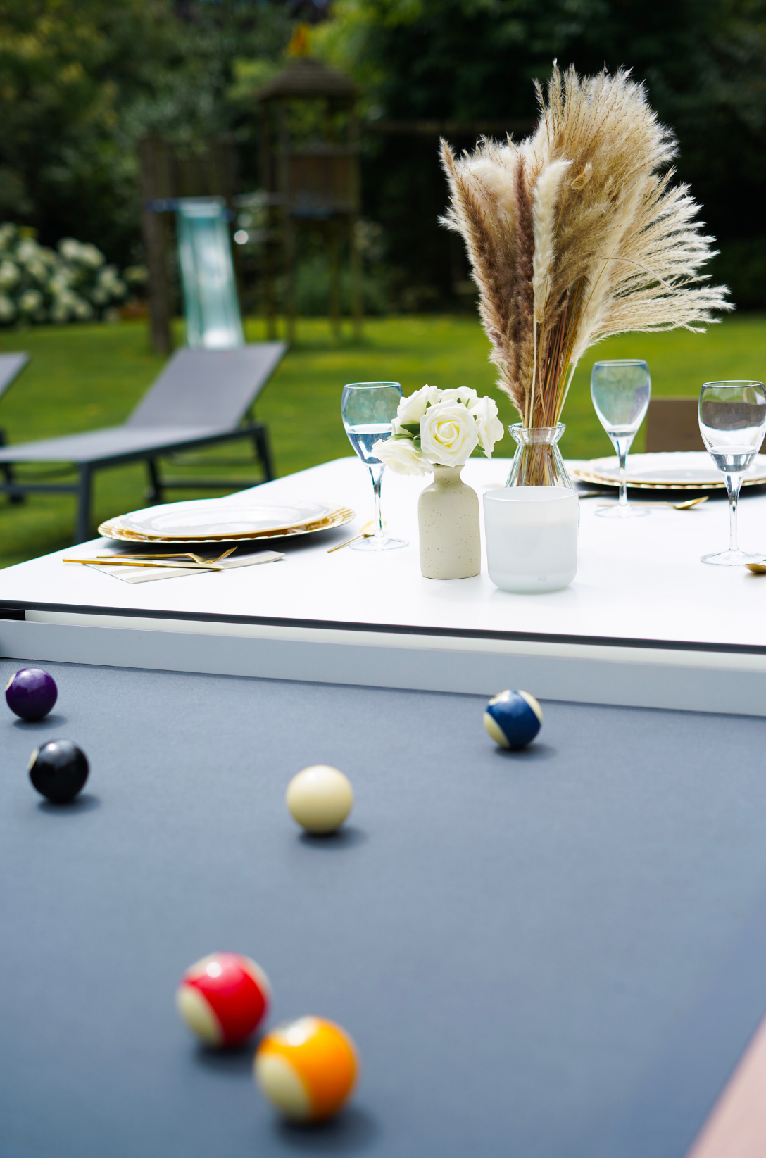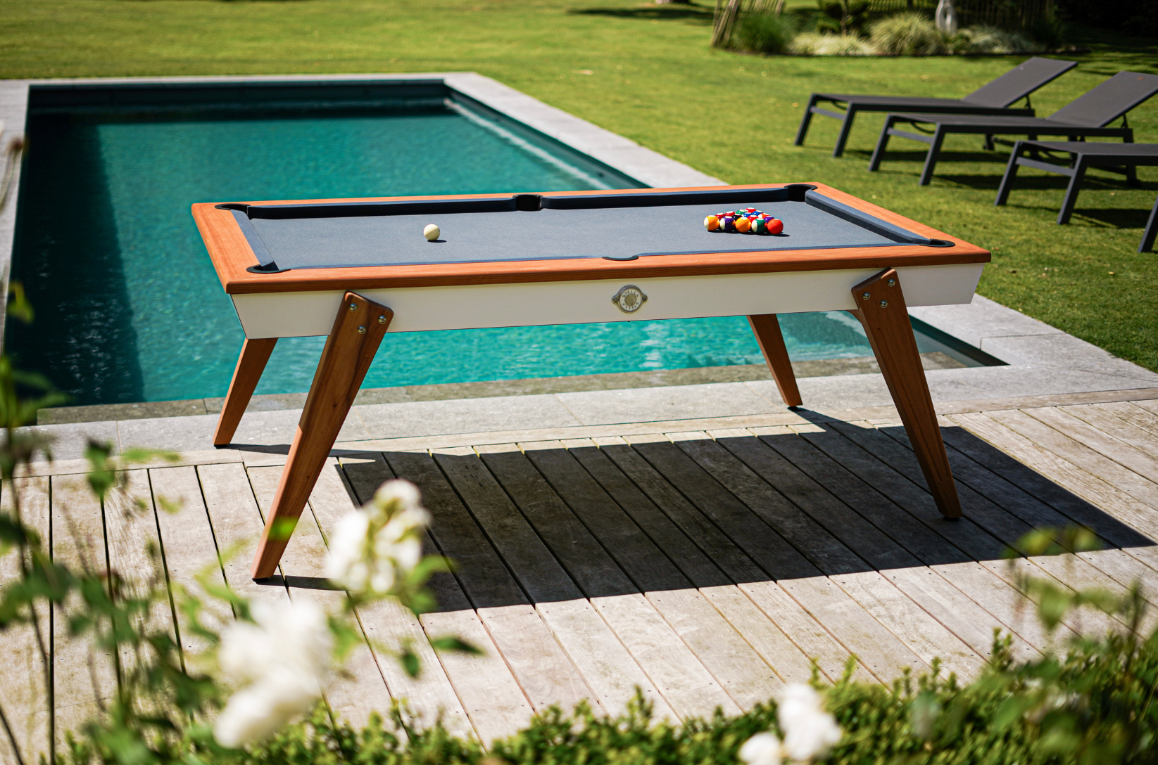 Much more than just a billiard, this outdoor model turns your exterior into a real place of life. Set on a terrace, by the pool or in the heart of the garden, it naturally attracts eyes and instantly gathers your guests. It becomes the central point around which exchanges are created and moments continue.