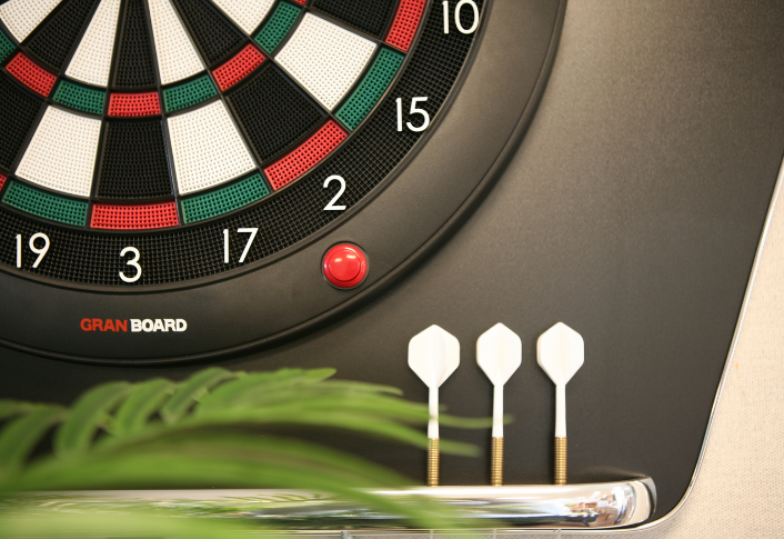 The Granboard electronic darts game combines modern technology with the young spirit of old coffee games.