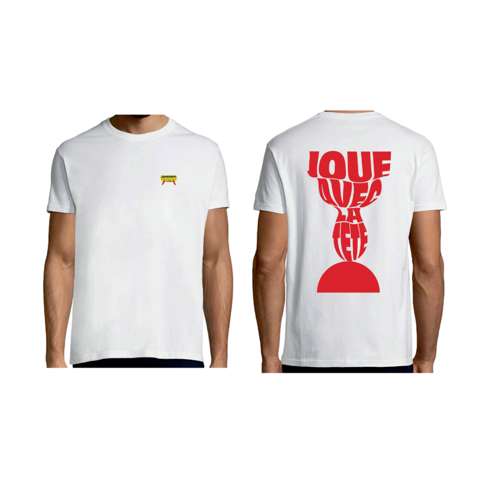The Stella team presents its new cotton t-shirts. On the front, you'll find an embroidery featuring a foosball table, with the iconic yellow and red Champion from the cafés. On the back, an original design by Stella is printed, illustrating the "head game" while leaving room for interpretation.