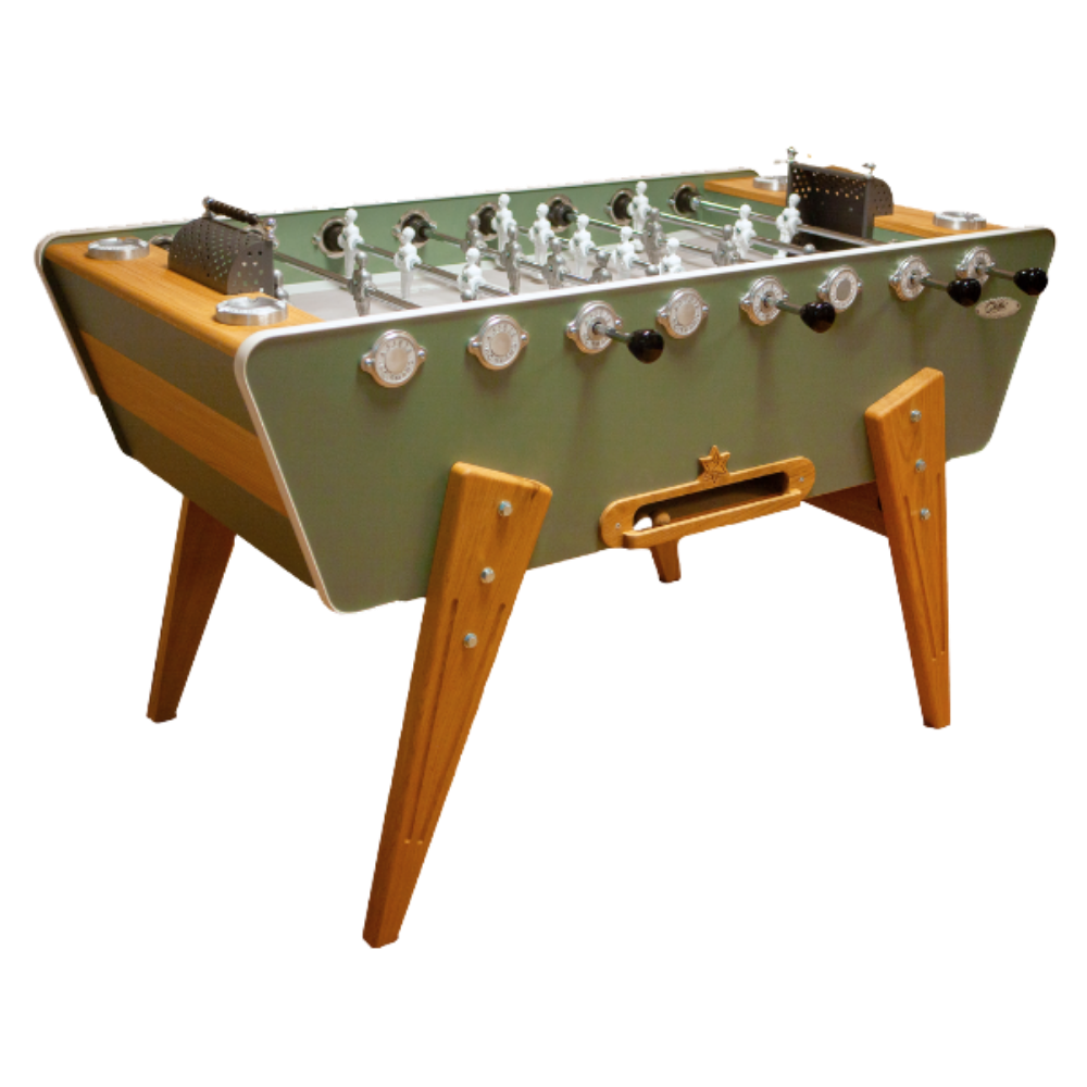 A faithful replica of the classic café foosball table, the Stella Champion Collector is a nostalgic ode to the foosball tables that marked the early days of the game in French bars. Its finish, combining MDF and solid oak, gives it a chic, two-tone look.