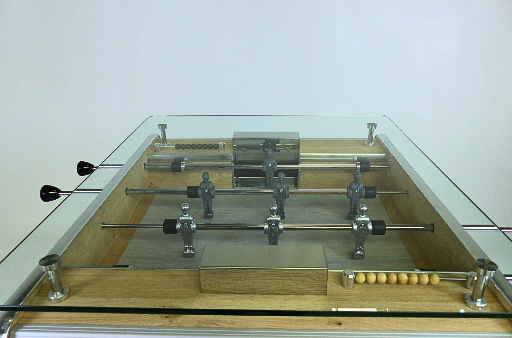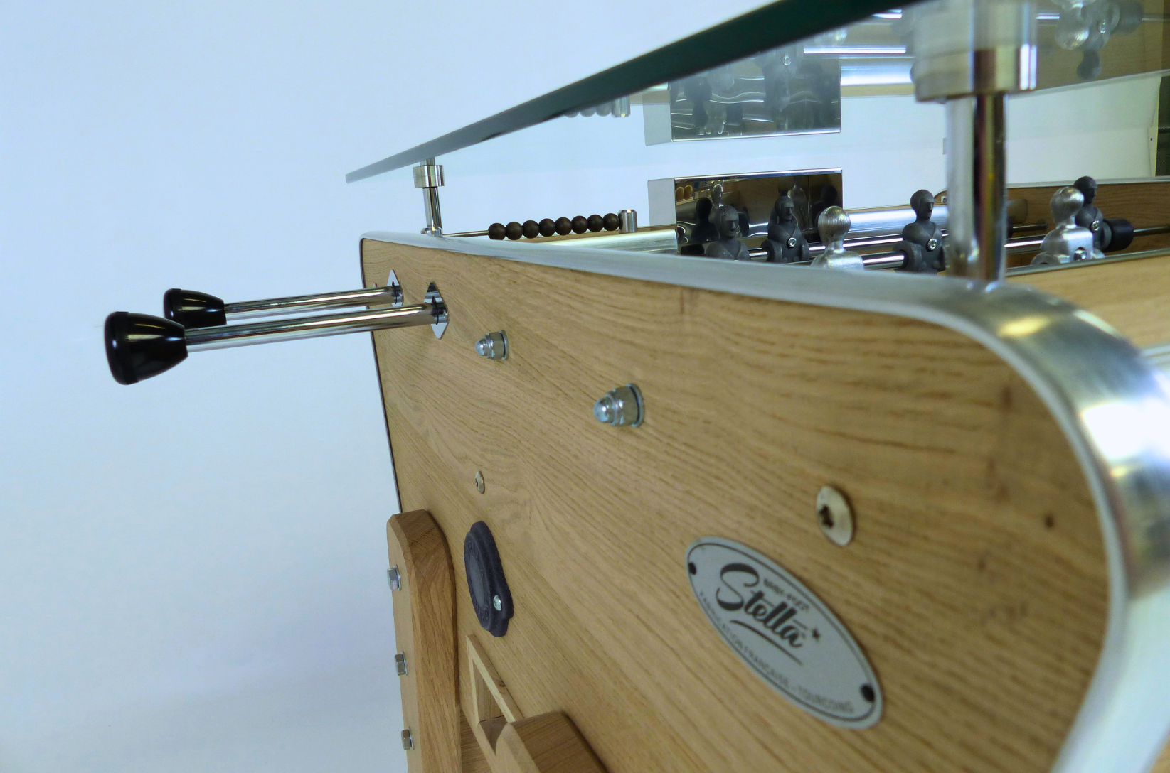 Since 1928, Stella Baby-Foot is established as the leading French and artisanal society in the north of France. After having equipped the many bars and cafes in the region, Stella offers you to rediscover her know-how through a unique gaming experience thanks to a baby football jewelry, the Milano with a glass table. If your goal is to get yourself into some crazy baby football games, through crazy laughs and a feeling of competition, the Milano with glass table will really be made for you. You benefit from Stella's know-how and experience, which has been modernised by designing a solid baby football, respecting traditional codes but using much more contemporary materials for a most successful vintage effect.