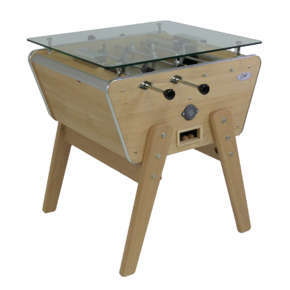 With the presence of a safety glass tray, you will be able to turn your baby football into a top table. Stella does not betray her reputation by carefully combining gerflex, bakelite, oak and aluminum for an irresistible rendering. Thanks to its dual function, you will be able to enjoy a particularly intense baby football game or on the contrary have a high table that will allow you to sip a glass. Thanks to its small dimensions, the Milano with glass table will easily install in any interior with colors that you can customize so that it blends perfectly.