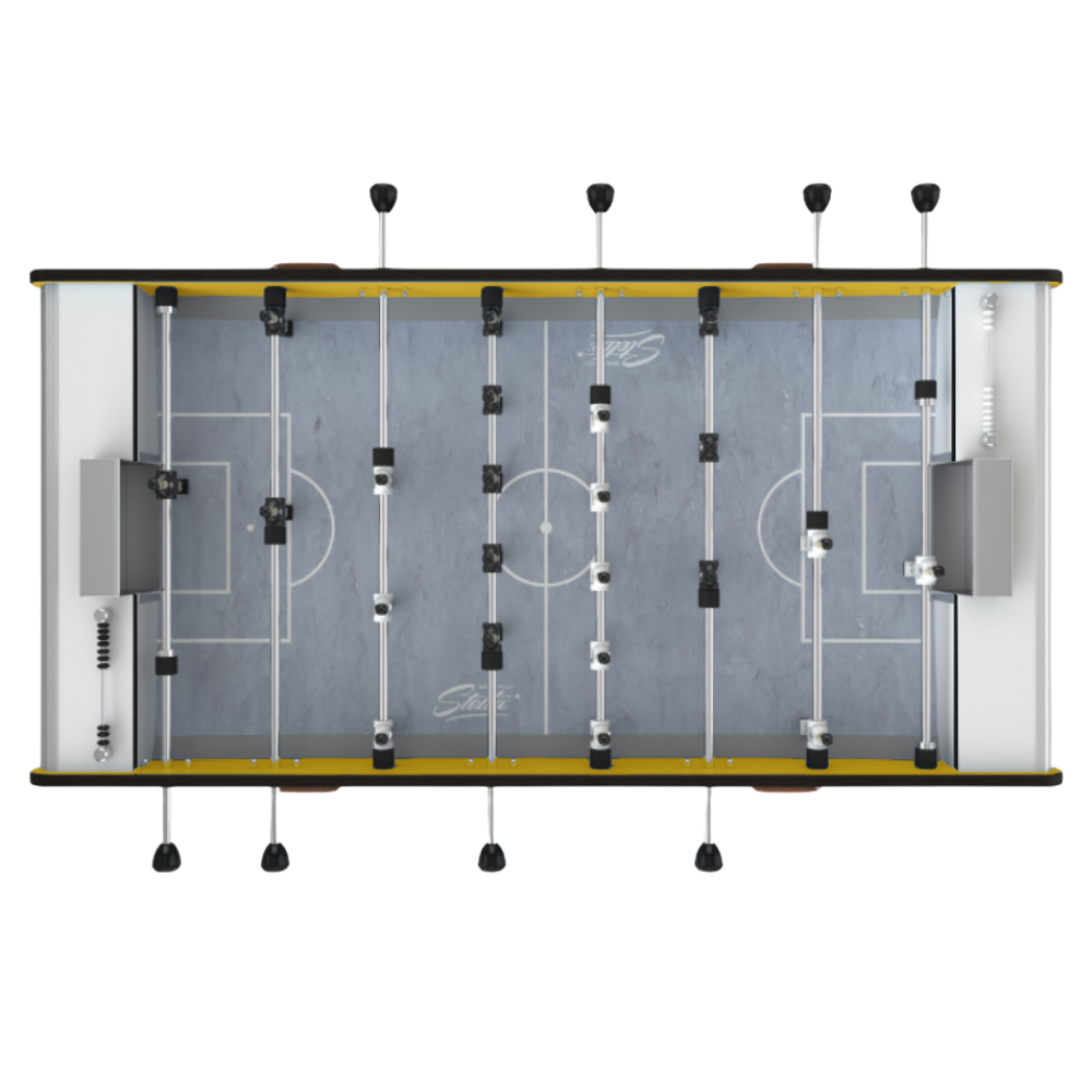 In addition to being more aesthetic, they release lubricant pellets for the maintenance of steel bars. Behind the goals, the joint cover is replaced by an aluminium finish. The feet are hand painted in workshop and you can even customize the colors of this optional baby football. Now you are unstickable on our 2 entry-level Stella football tables!