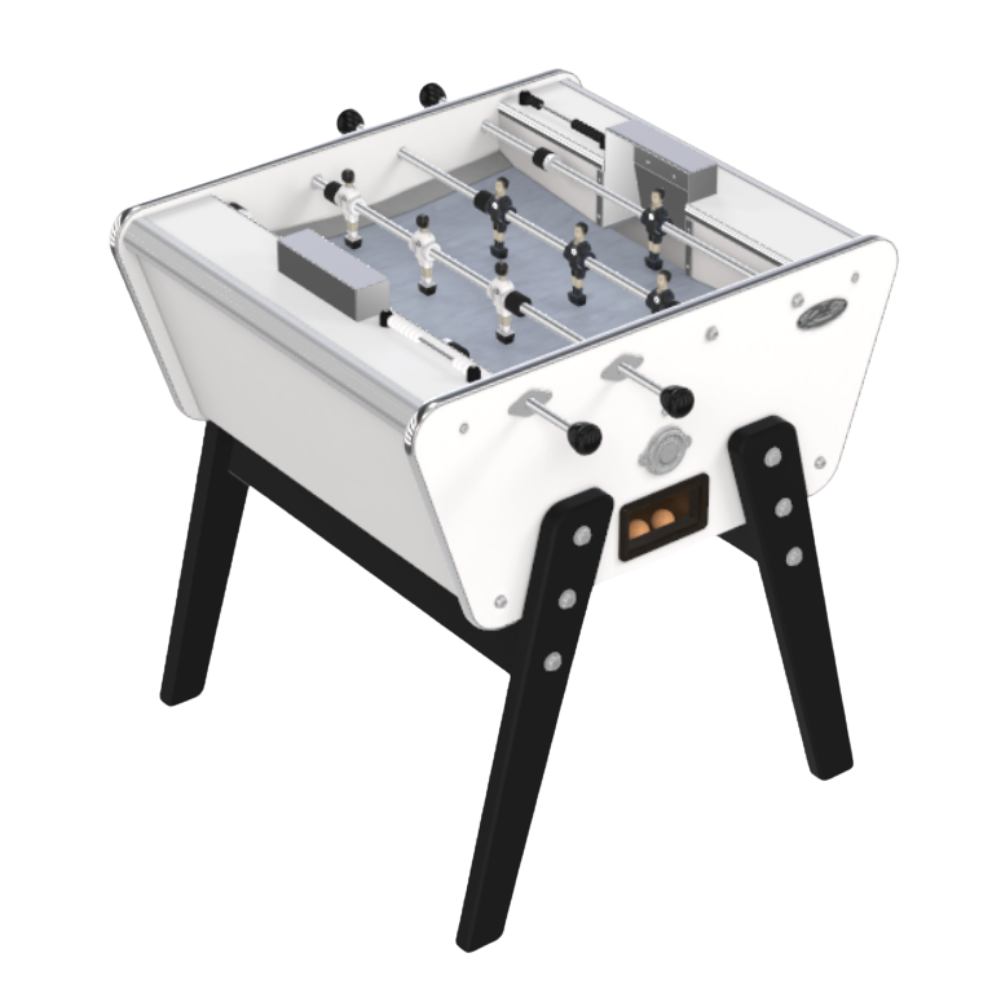 The feet of the Toi&Moi are in solid beech, a hardwood, aesthetic and resistant that our carpenters will work and paint by hand in our workshops. A concentrated of very good quality, which we find through our wide bars of foosball. You will benefit from finishing in the details: Fixing bearings using Stella decorative diamond stainless steel, long dot counters placed next to the goals, but also profiled behind the anodized aluminum goals make it a small qualitative and decorative baby.
