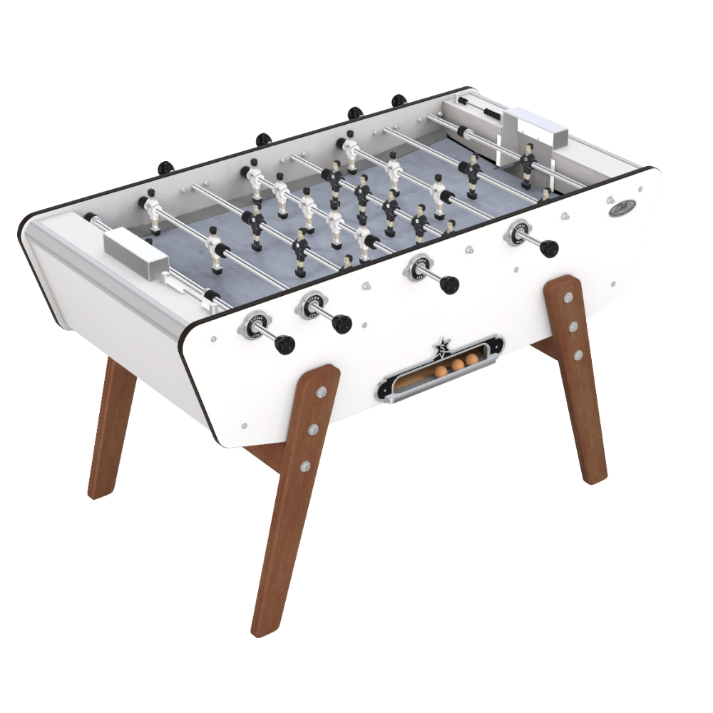 The large size of our players allows the game of the head and the lateral bands ensure the possibility to make sautéed balls that are equipped with our foosball table. Discover our star outdoor model!