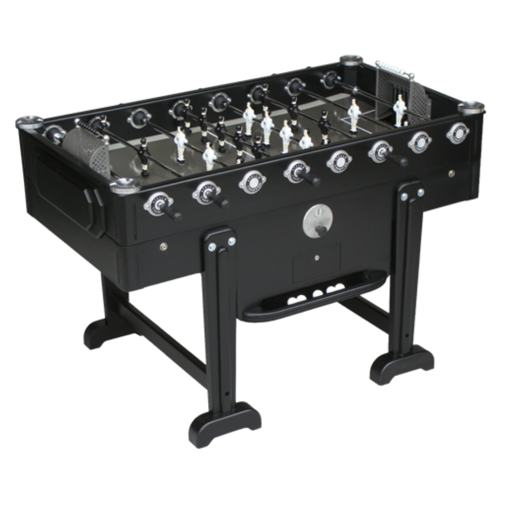 The reputation of baby football Stella Retro is more than just its crazy charm. It also stands out with the solidity of a solid wood piece and Stella game specifics. Relive championship tournaments with a French game: Cassette, tape, trade and regular blockages are possible by helping you with slanted lateral bands and players. The fluidity of the game and the regularity of the controls are facilitated by a flexible Gerflex background on this model. Tracing of the ground is directly present on the retro Stella baby football and the coinager (0,5€, 1€ or 2€ to choose from). Use the 2 keys delivered with the foosball to open as a safe and easily recover coins in the money machine. Very resistant in time, our 50s baby football is one of our most historic tables with the Champion Collector. The goal cages are identical to those of the period, perforated in steel and hand painted in our workshops. The connoisseurs will quickly understand, the high and arched shape of the goals gives you the opportunity to make lobs (put the ball over the goal bar). Who says coffee football, says? Ashtrays! 4 ashtrays are present in the corners of your baby football to finish with a magnificent relief and wooden bullet exit.
