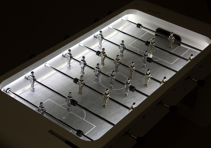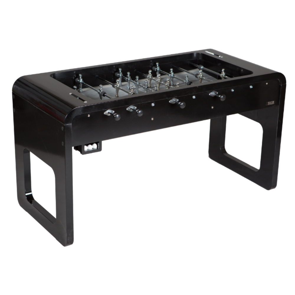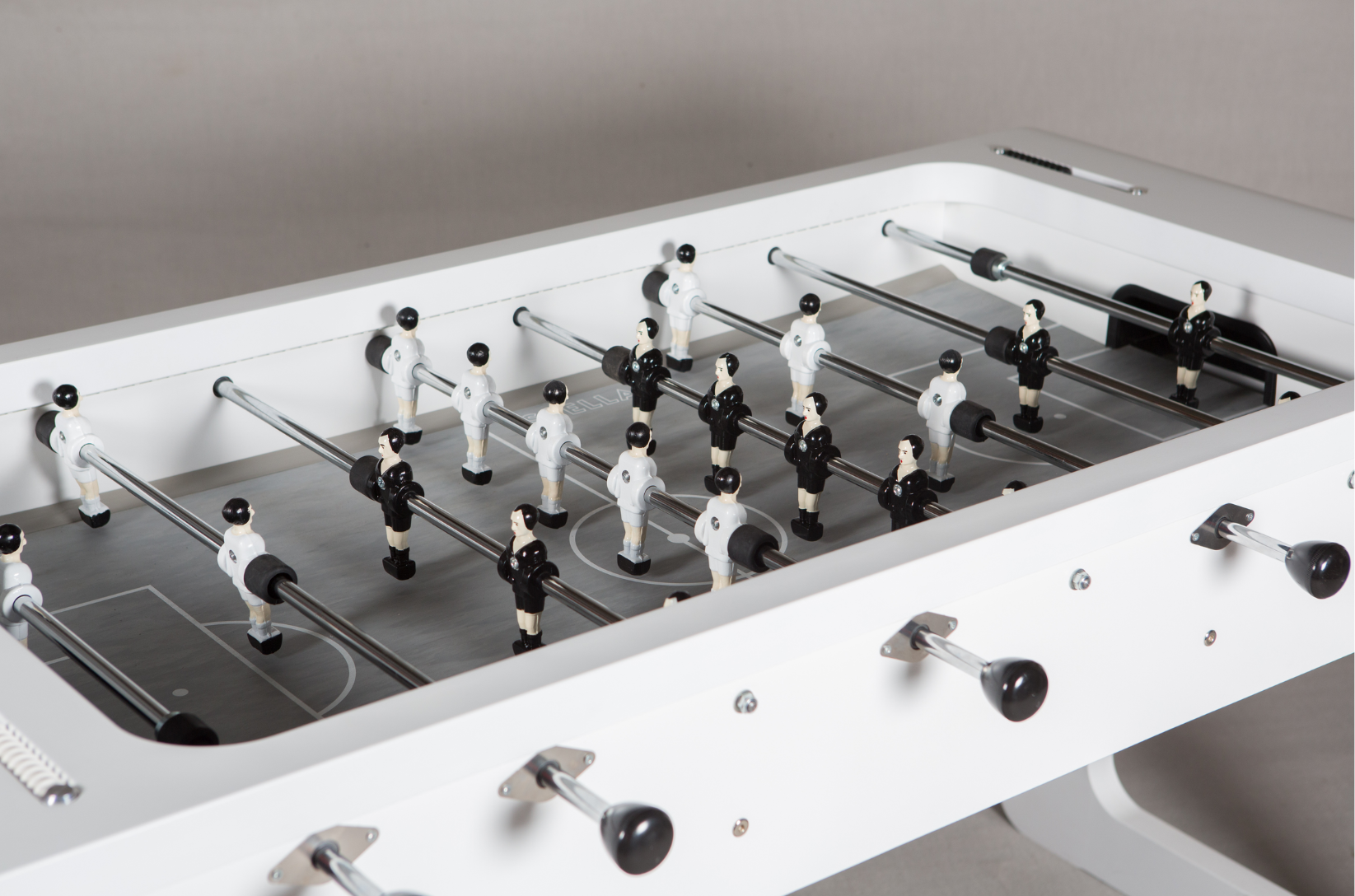 You can have 2 passions in life: baby football and decoration. At Stella, we listen to the feedback from our customers and you will notice that the majority of our foosballs have a wide range of colours. The Smartline is our sewing model to meet the challenge of making a coffee football table and a contemporary furniture. Bet successful! The emotion is important at Stella and we understand the desire to eat on her table football and finish the meal with dessert, an unrivalled game. Thus, many of you opt for the tray option on this model to transform your baby football into a sitting table or a dessert of 1m80 and its openwork feet. Outside the parts, the surface is completely smooth with the use of a medium painted in black or matt white. Didn't you see the points accounts? Good! They are placed in areas inlaid specifically on the baby football so as not to cut the view and leave the box open. The goal cages are also invisible and dug inside the tray. The bullet picker is staggering on the side to easily store it when received. But your guests will recognize the Stella key, especially if you customize it by adding LEDs!