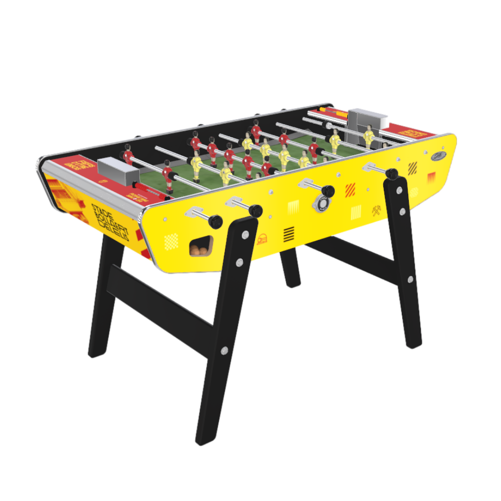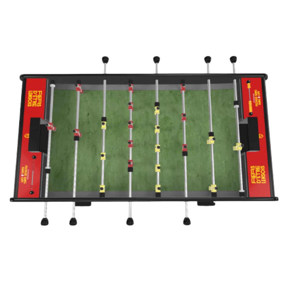 In collaboration with RC LENS, we offer you the Stella Home foosball table with the colors of your favorite soccer club: RC LENS. It is the exact replica of the coffee table with the blood and gold colors. You who are fans enjoy this table soccer in collaboration with the legendary club of the North. A piece entirely manufactured in our workshops in Tourcoing, available within 4 weeks. PRODUCT UNDER OFFICIAL RC LENS LICENSE.