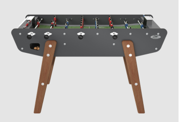 The solid wood, chosen for its authentic appearance, but especially for its ability to resist to humidity and UV. You can be sure that your wood will not swell or bend! To allow you to hose down your foosball table, you will find an HPL laminate underneath the Gerflex field as well as the body.