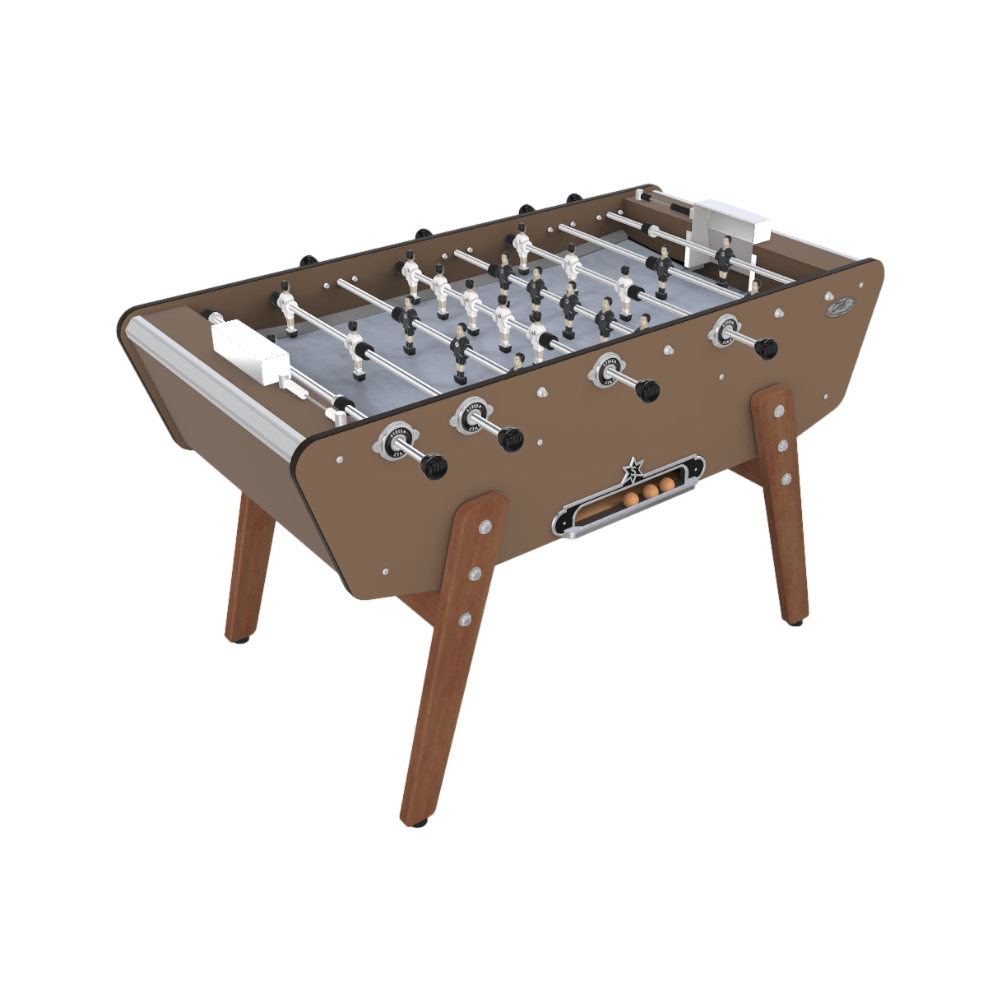 La grande taille de nos joueurs permet le jeu de la tête et les bandes latérales assurent la possibilité de faire des balles sautées dont sont dotés nos babyfoots. Découvrez notre modèle star outdoor !