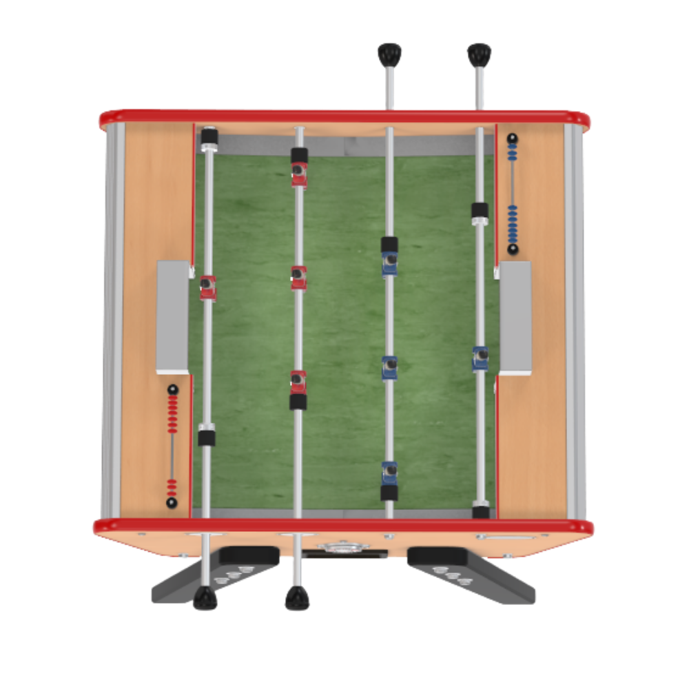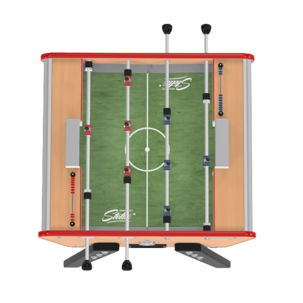 La qualité ne diminue pas avec la taille du baby-foot chez Stella, bien au contraire ! Le Toi&Moi, est confectionné dans le même atelier et de la même application qu’un mastro comme le Rétro. Nous savons que la plupart de ses utilisateurs le sollicitent énormément pour améliorer leur maîtrise. C’est pourquoi, nous avons installé des tiges métalliques de renfort et des poignées antidérapantes rondes ou longues pour une utilisation intensive.