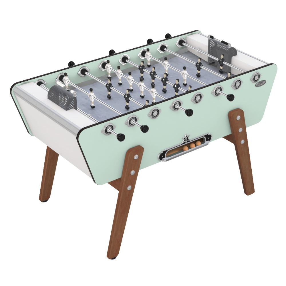 Le plus avec le baby-foot Stella Champion Outdoor réside dans le fait que vous n’aurez pas à vous en soucier en saison pluvieuse. Grâce à son bois traité, il est très résistant aux intempéries. Sa nouvelle finition Vert Belle-Ile trouvera sa place partout, elle s'adapte parfaitement à l'espace extérieur que vous disposez.